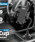 Car Cup Holder Phone Mount 360° Adjustable Flexible Arm Stand with Semi-Automatic Grip and Stable Triangle Structure for Safe Driving